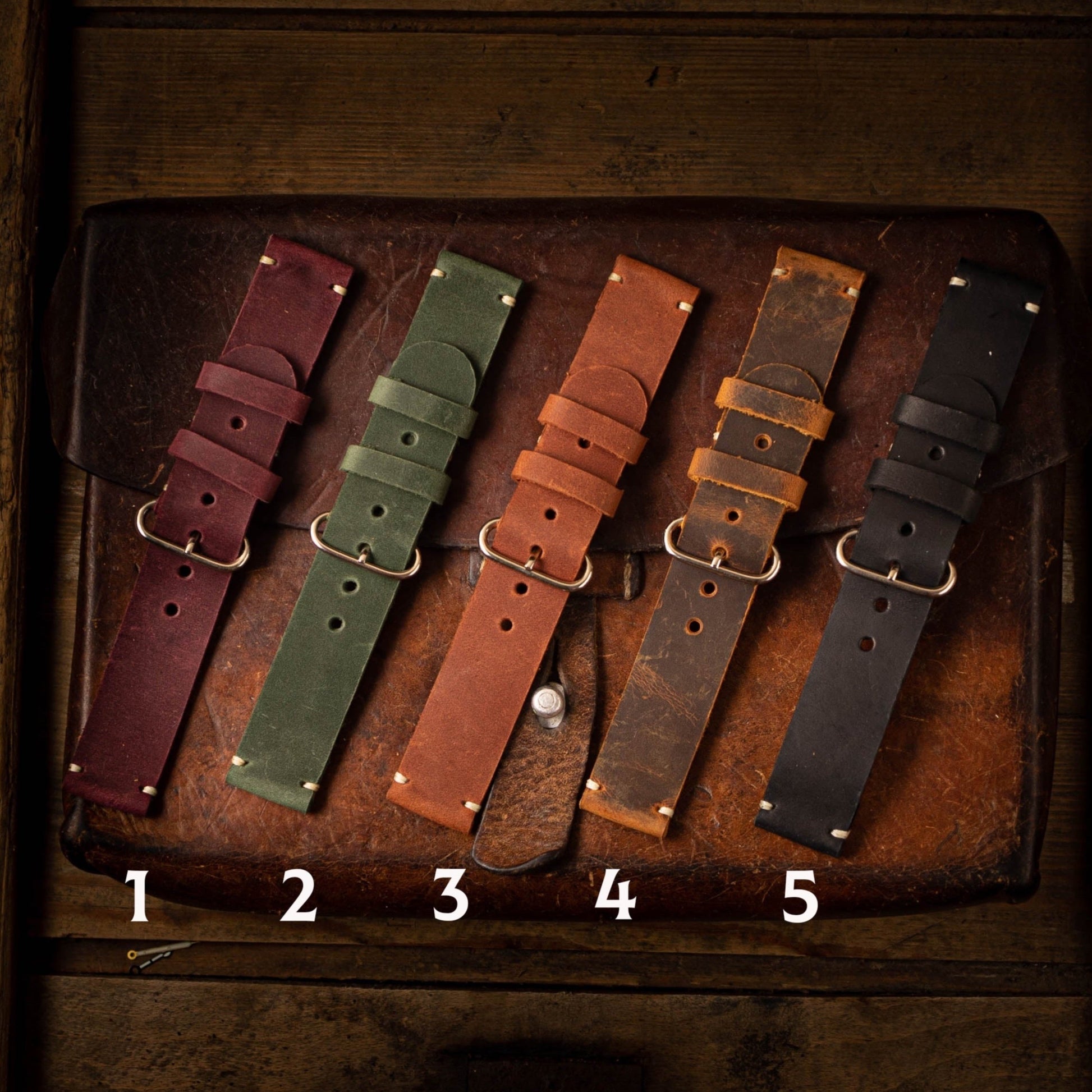 leather gathers scratch marks and patina easily and contrast our classy vintaje watch.